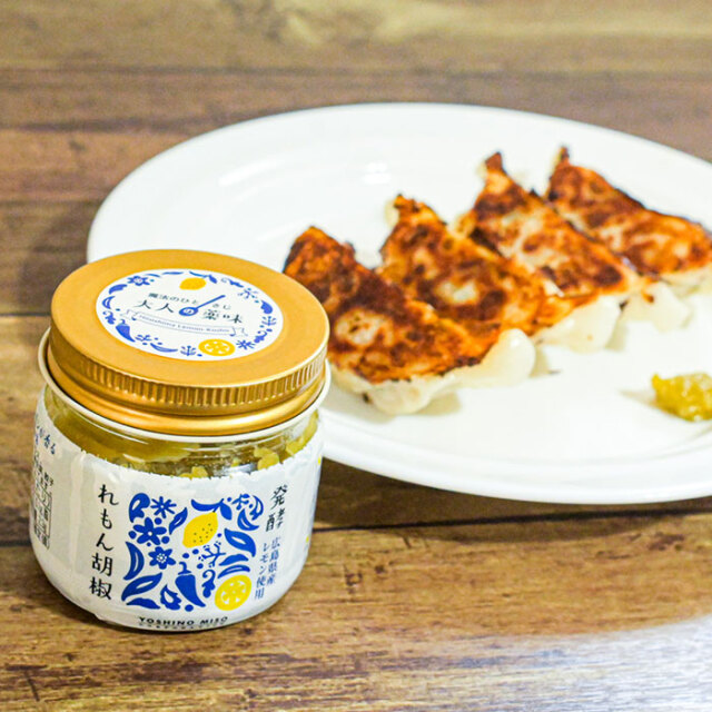 広島県産レモンを塩こうじで丁寧に発酵させ、青唐辛子と合わせて仕上げた「発酵れもん胡椒」。